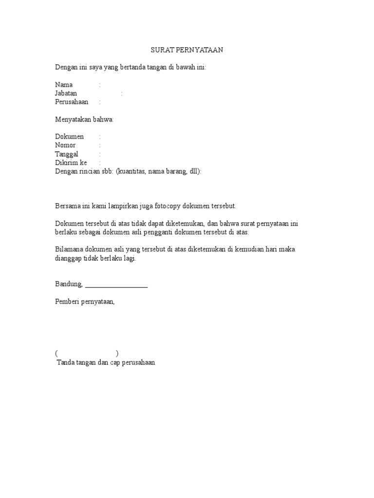 Surat Pernyataan Kehilangan Dokumen Asli Pdf