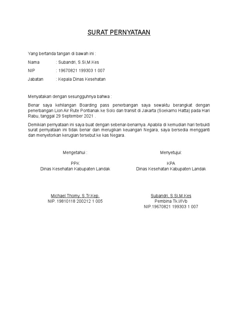 Surat Pernyataan Kehilangan Boarding Pass Pdf